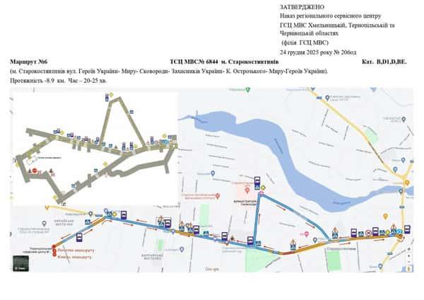 Маршрут №6 ТСЦ №6844. Для перевірки навичок керування ТЗ категорій B, BE, D1, D.