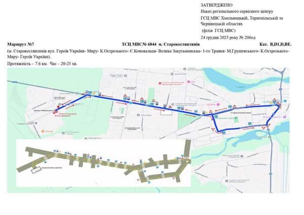 Маршрут №7 ТСЦ №6844. Для перевірки навичок керування ТЗ категорій B, BE, D1, D.