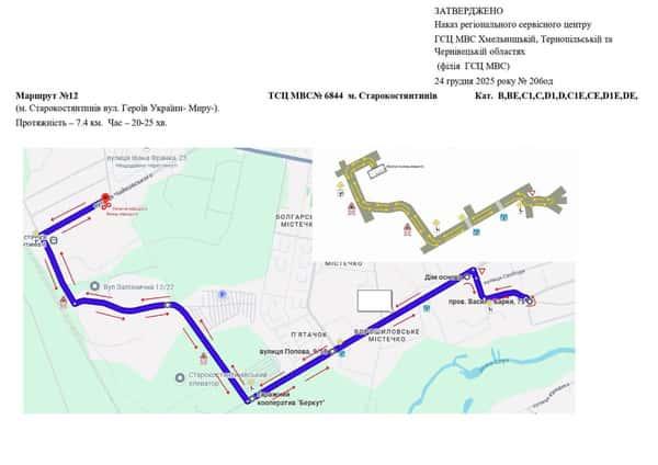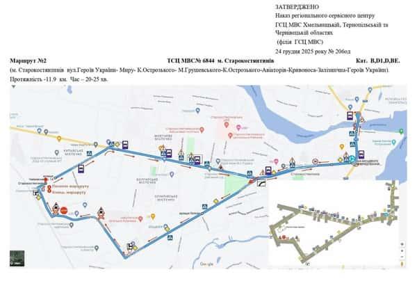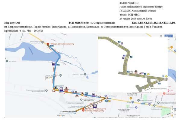 Старокостянтинів - Маршрути для перевірки навичок керування ТЗ