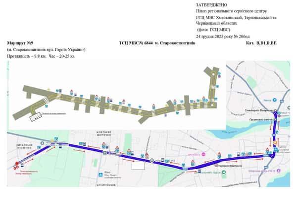 Маршрут №9 ТСЦ №6844. Для перевірки навичок керування ТЗ категорій B, BE, D1, D.