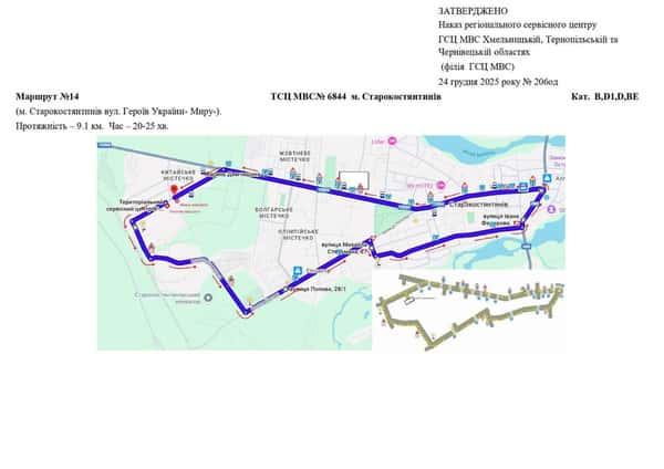Маршрут №14 ТСЦ №6844. Для перевірки навичок керування ТЗ категорій B, BE, D1, D.