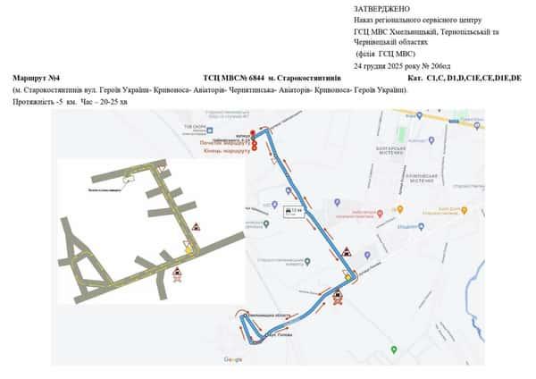 Маршрут №4 ТСЦ №6844. Для перевірки навичок керування ТЗ категорій C1, C, D1, D, C1E, CE, D1E, DE.