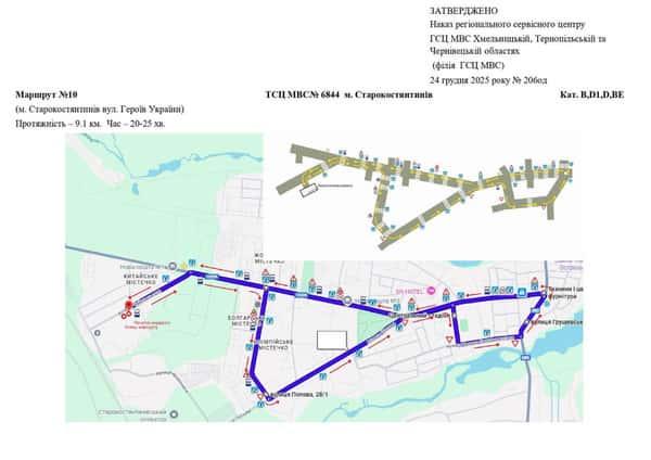Маршрут №10 ТСЦ №6844. Для перевірки навичок керування ТЗ категорій B, BE, D1, D.