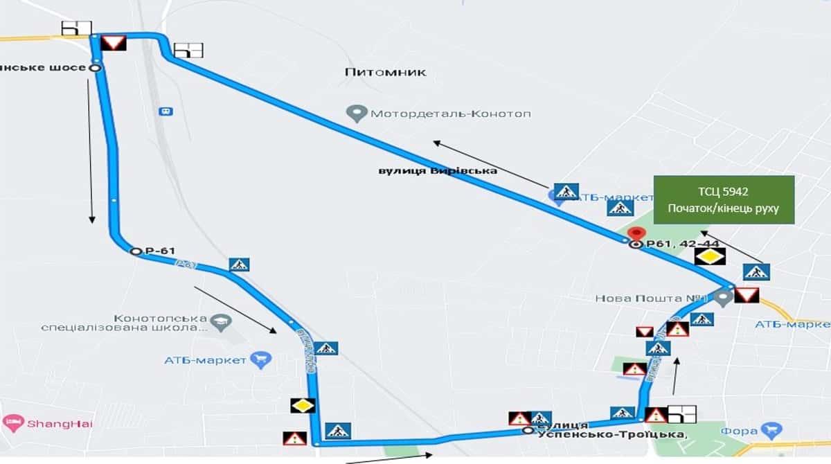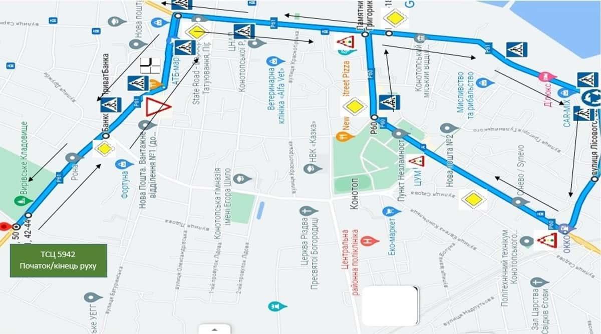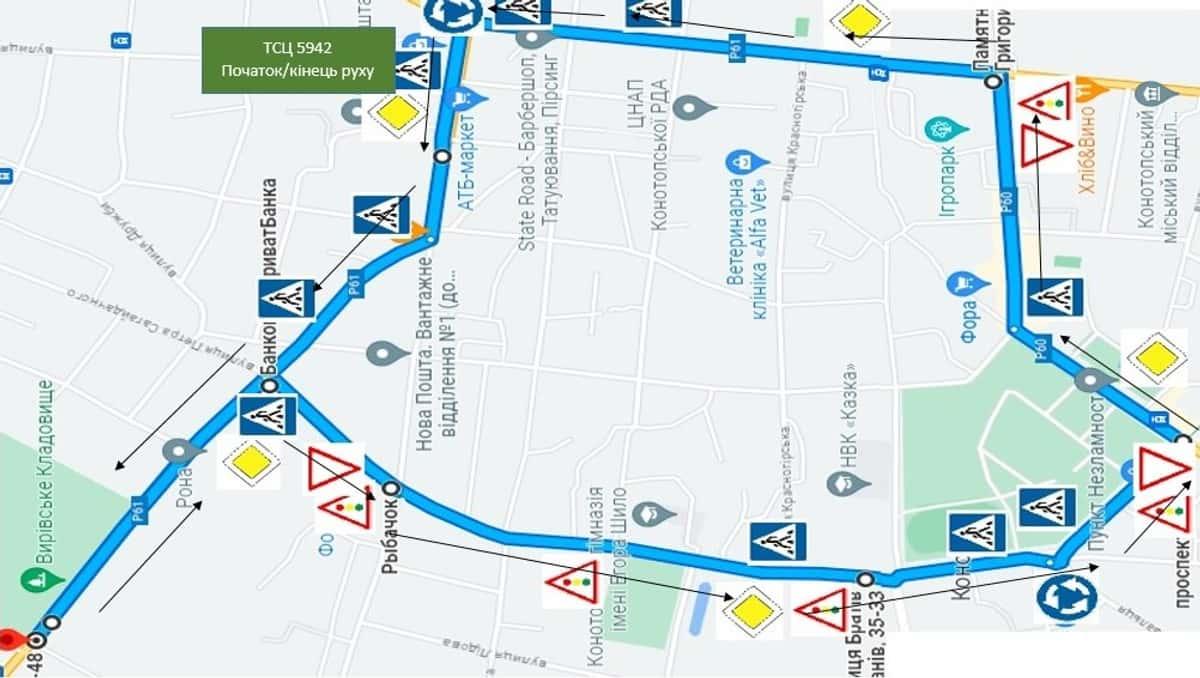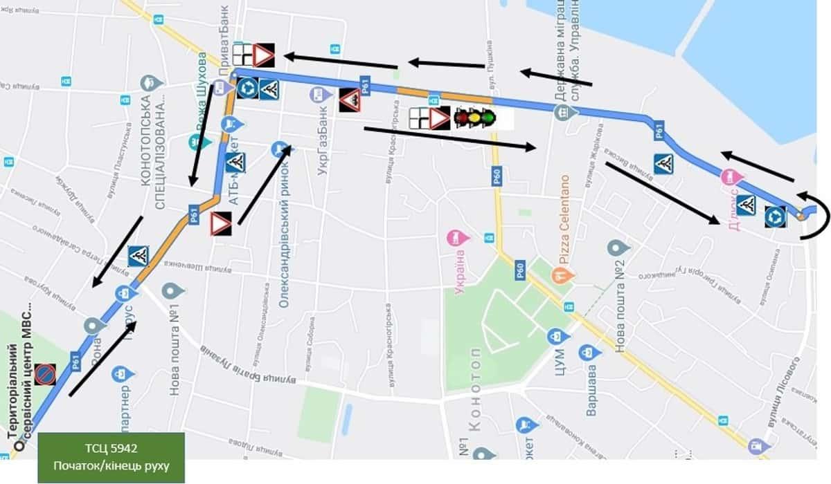 Конотоп - Маршрути для перевірки навичок керування ТЗ