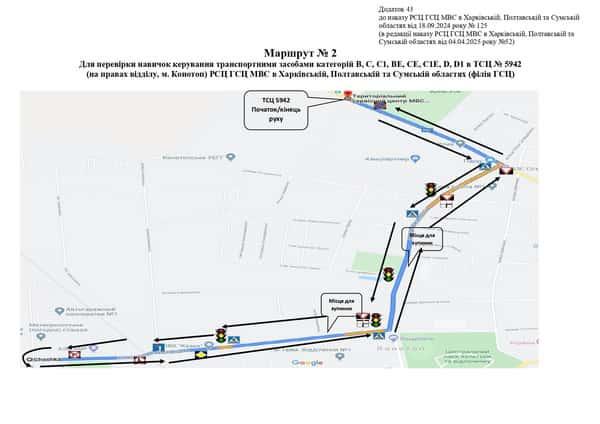 Маршрут №2 ТСЦ МВС № 5942. Для перевірки навичок керування ТЗ категорії B, C1, C, D1, D, BE, C1E, CE, D1E.