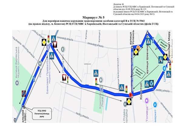 Маршрут №5 ТСЦ МВС № 5942. Для перевірки навичок керування ТЗ категорії B.