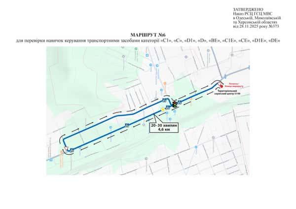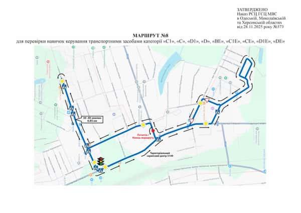 Маршрут №6 ТСЦ МВС № 5149. Для перевірки навичок керування ТЗ категорії С1, С, D1, D, CE, C1E, BE, D1E, DE.