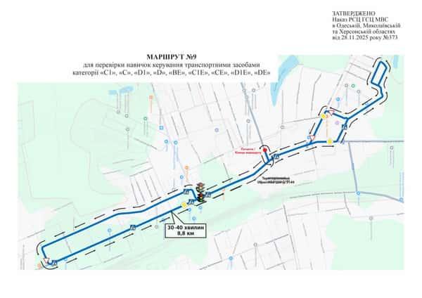 Маршрут №9 ТСЦ МВС № 5149. Для перевірки навичок керування ТЗ категорії С1, С, D1, D, CE, C1E, BE, D1E, DE.