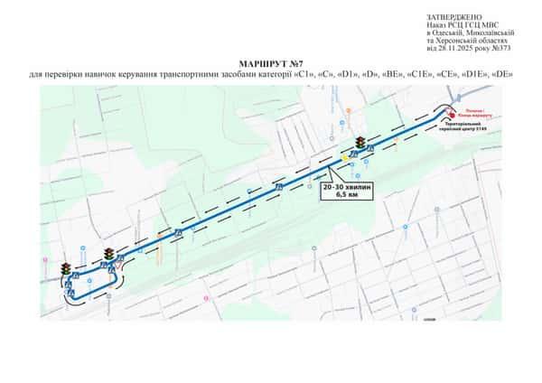 Маршрут №7 ТСЦ МВС № 5149. Для перевірки навичок керування ТЗ категорії С1, С, D1, D, CE, C1E, BE, D1E, DE.