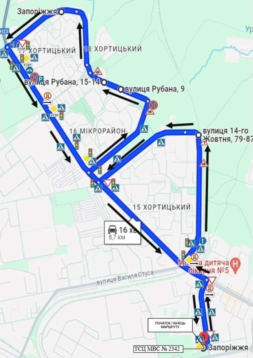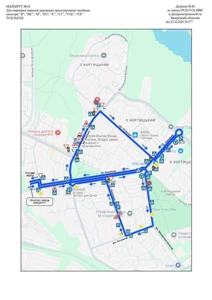 Запоріжжя - Маршрути для перевірки навичок керування ТЗ