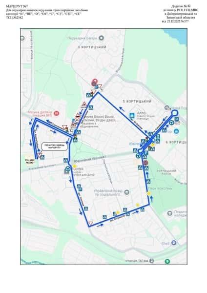 Маршрут №7 ТСЦ МВС № 2341. Для перевірки навичок керування ТЗ категорії B, BE, D1, D.
