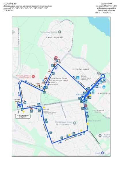 Маршрут №9 ТСЦ МВС № 2341. Для перевірки навичок керування ТЗ категорії B, BE, D1, D, С, С1, С1Е, СЕ.