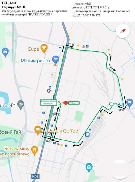 Маршрут №10 ТСЦ МВС № 2341. Для перевірки навичок керування ТЗ категорії B, BE, D1, D.