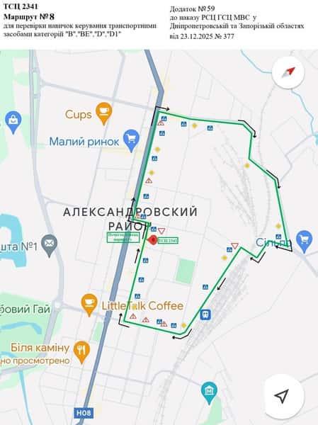 Маршрут №8 ТСЦ МВС № 2341. Для перевірки навичок керування ТЗ категорії B, BE, D1, D.
