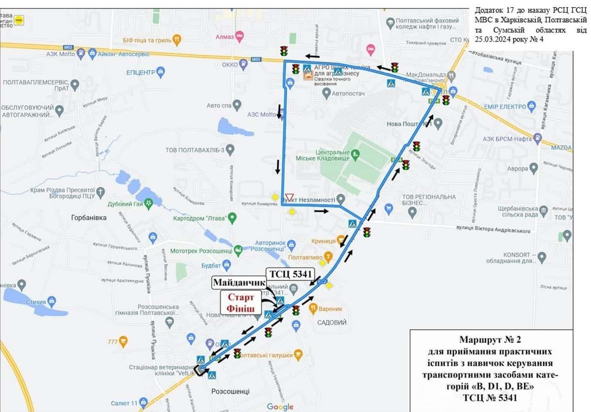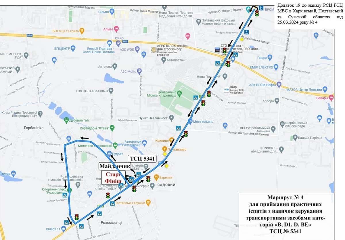 Розсошенці - Маршрути для перевірки навичок керування ТЗ