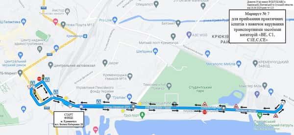 Кременчук - Маршрути для перевірки навичок керування ТЗ