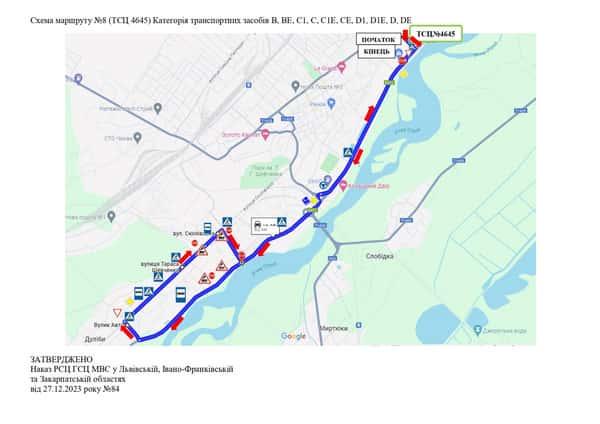 Маршрут №8 ТСЦ МВС № 4645. Для перевірки навичок керування ТЗ категорії B, BE, C1, C1E, C, CE, D1, D1E, D, DE.