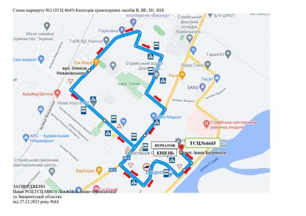 Маршрут №2 ТСЦ МВС № 4645. Для перевірки навичок керування ТЗ категорії B, BE, D1, D1E.