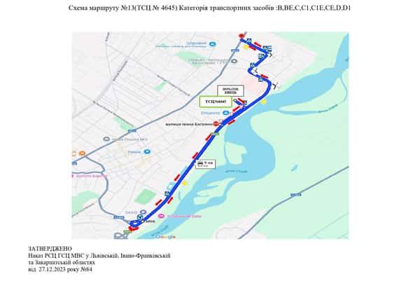 Маршрут №13 ТСЦ МВС № 4645. Для перевірки навичок керування ТЗ категорії B, BE, C1, C1E, C, CE, D, D1.