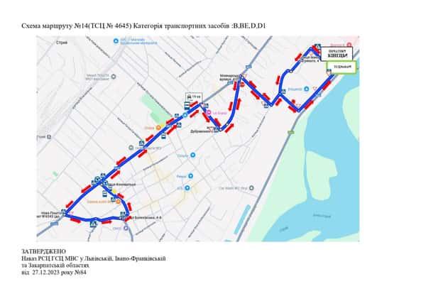 Маршрут №14 ТСЦ МВС № 4645. Для перевірки навичок керування ТЗ категорії B, BE, D, D1.