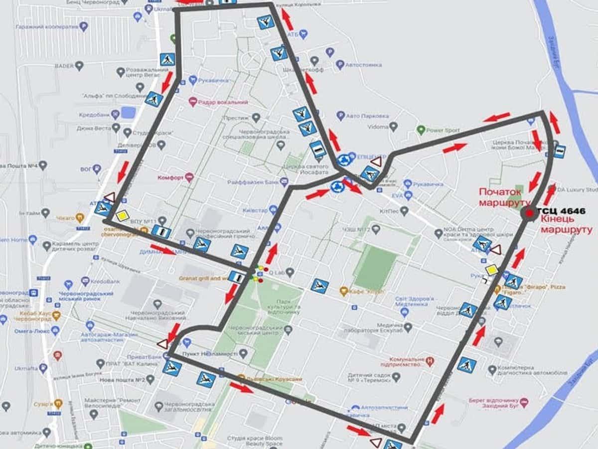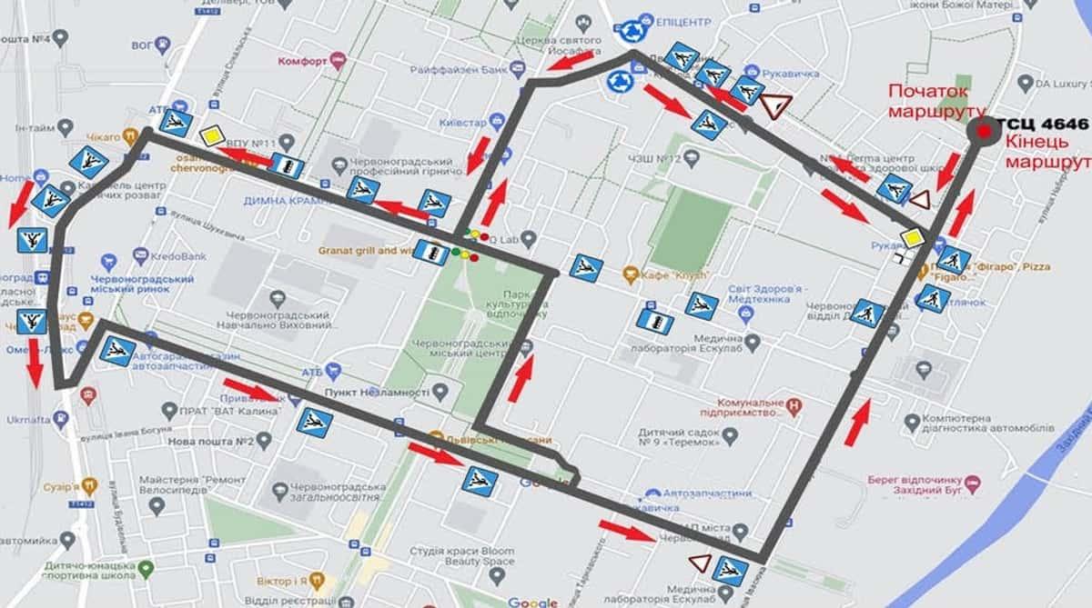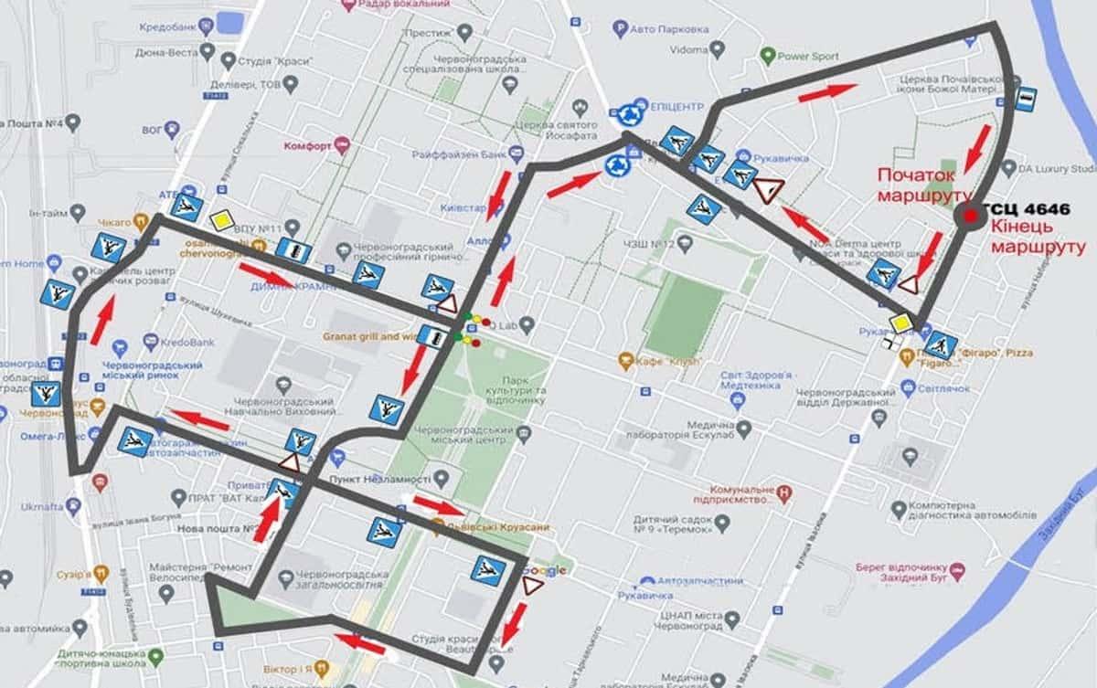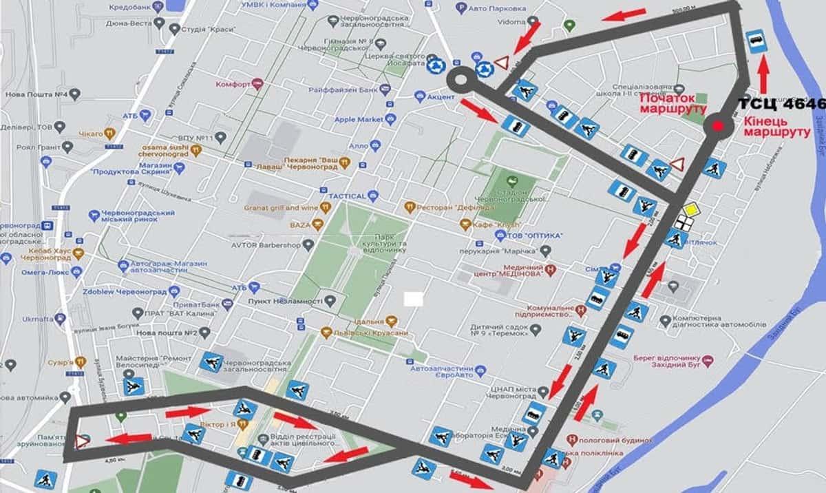 Маршрут №1 ТСЦ МВС № 4646. Для перевірки навичок керування ТЗ категорії B, BE, D1, D.