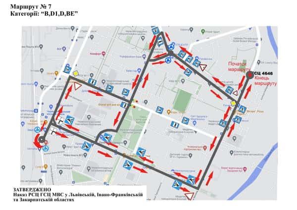 Маршрут №7 ТСЦ МВС № 4646. Для перевірки навичок керування ТЗ категорії B, BE, D1, D.
