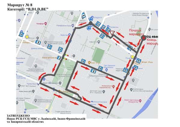 Маршрут №8 ТСЦ МВС № 4646. Для перевірки навичок керування ТЗ категорії B, BE, D1, D.