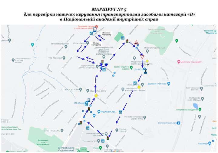 Маршрути для практичних іспитів у рамках проєкту «Автошколи для осіб з інвалідністю»