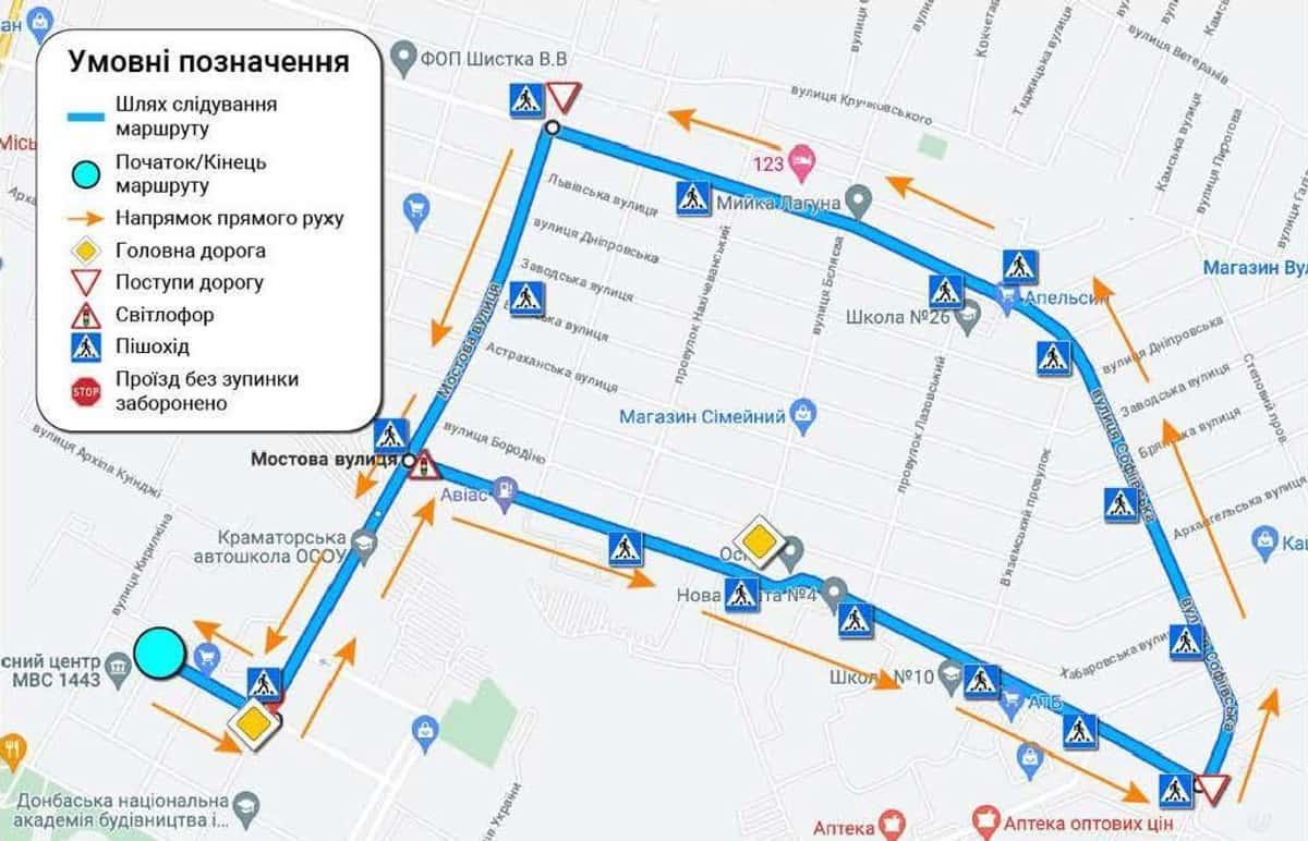 Краматорськ - Маршрути для перевірки навичок керування ТЗ