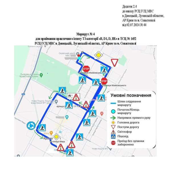 Маршрут №4 ТСЦ МВС № 1452. Для перевірки навичок керування ТЗ категорії B, D1, D, BE.