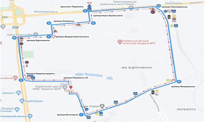 Маршрут №5 для перевірки навичок керування ТЗ категорії В, ВЕ в ТСЦ №8042 РСЦ МВС в м.Києві