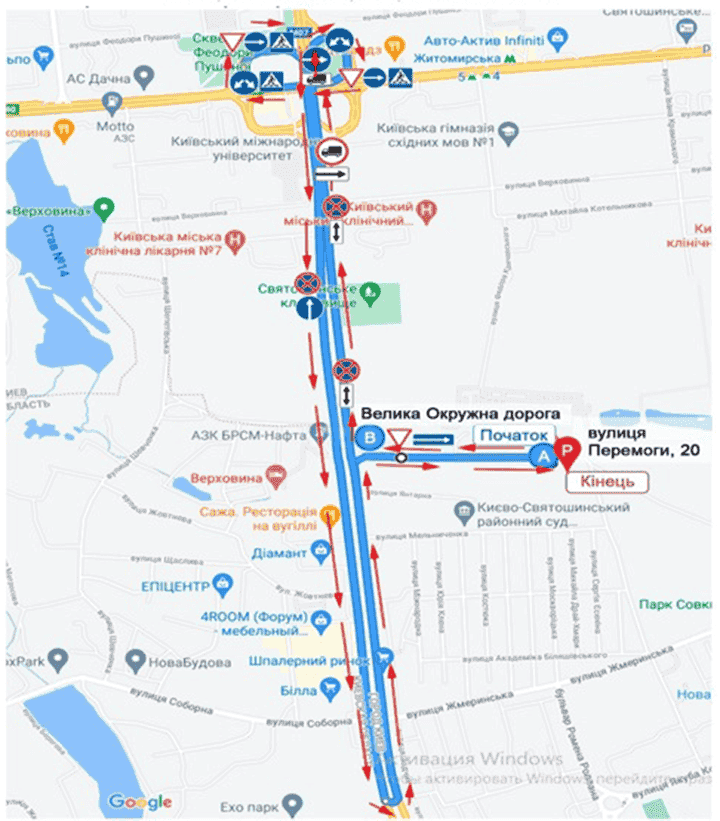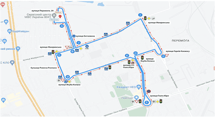 Маршрут №1 для перевірки навичок керування ТЗ категорії В, ВЕ в ТСЦ №8049 РСЦ МВС в м.Києві