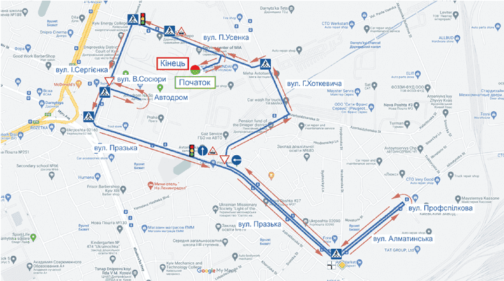 Маршрут №1 для перевірки навичок керування ТЗ категорії В, ВЕ, С1, С, СЕ, С1Е, D, D1, D1Е, DЕ в ТСЦ №8041 РСЦ МВС в м.Києві