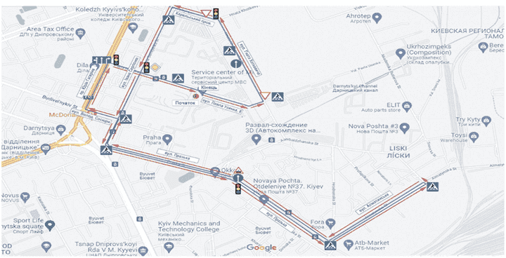 Маршрут №1 для перевірки навичок керування ТЗ категорії В, ВЕ, С1, С, СЕ, С1Е, D, D1 в ТСЦ №8042 РСЦ МВС в м.Києві