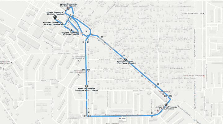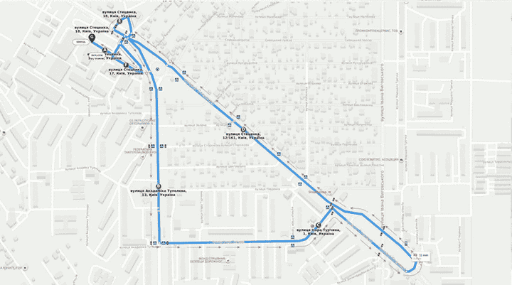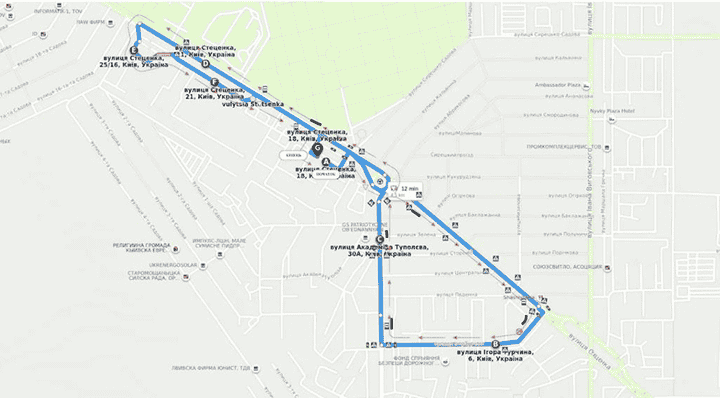 Маршрут №3 для перевірки навичок керування ТЗ категорії В, ВЕ в ТСЦ №8042 РСЦ МВС в м.Києві