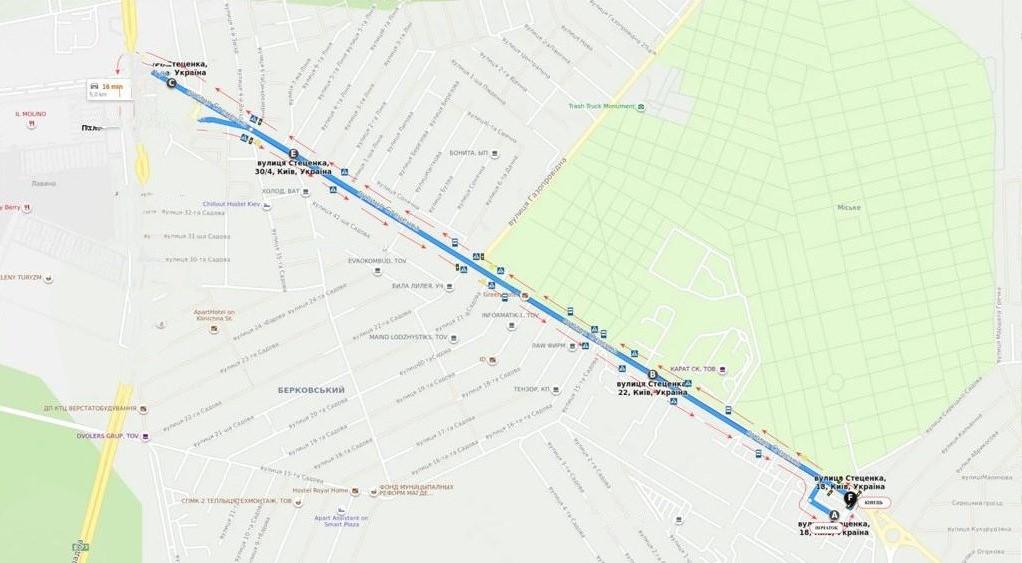 Маршрут №5 для перевірки навичок керування ТЗ категорії С, С1, СЕ, С1Е, D, D1, D1Е, DЕ в ТСЦ №8041 РСЦ МВС в м.Києві