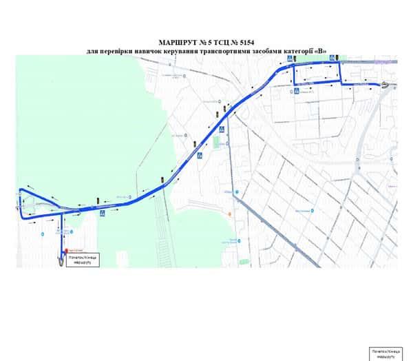 Маршрут №5 ТСЦ МВС № 5154. Для перевірки навичок керування ТЗ категорії В, BE, C, C1, CE, C1E, D1, D, D1E, DE.