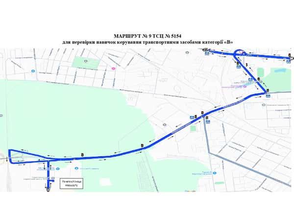 Маршрут №9 ТСЦ МВС № 5154. Для перевірки навичок керування ТЗ категорії В.