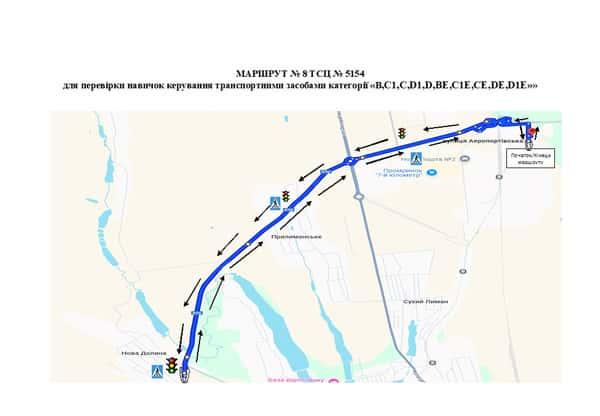 Маршрут №8 ТСЦ МВС № 5154. Для перевірки навичок керування ТЗ категорії В, BE, C, C1, CE, C1E, D1, D, D1E, DE.