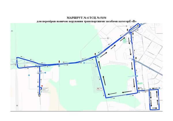 Маршрут №6 ТСЦ МВС № 5154. Для перевірки навичок керування ТЗ категорії BE, C, C1, CE, C1E, D1, D, D1E, DE.
