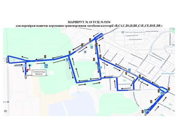 Маршрут №10 ТСЦ МВС № 5154. Для перевірки навичок керування ТЗ категорії В, BE, C, C1, CE, C1E, D1, D, D1E, DE.