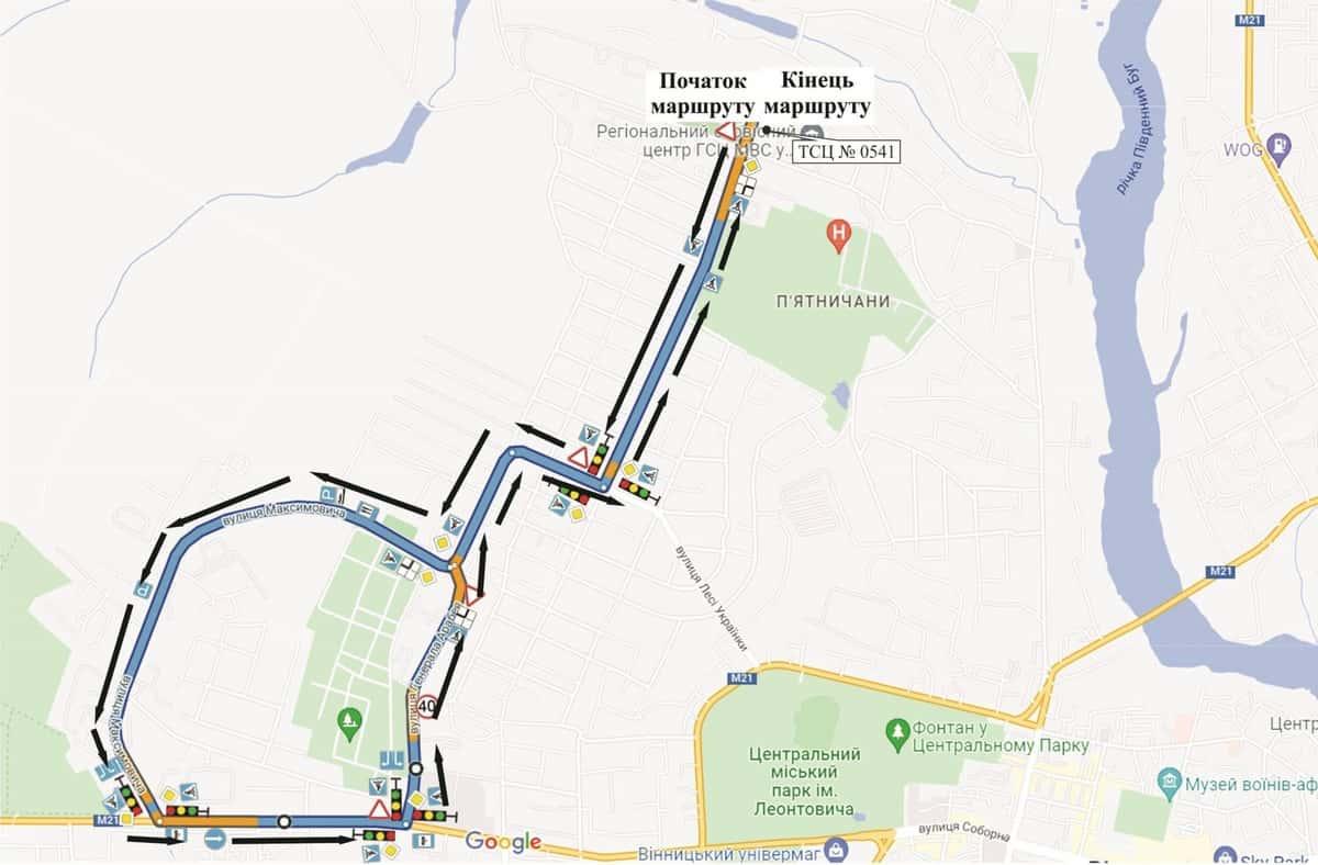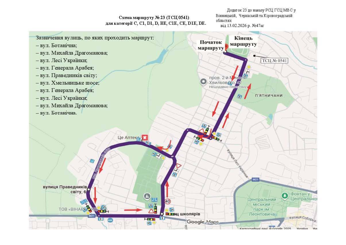 Вінниця - Маршрути для перевірки навичок керування ТЗ