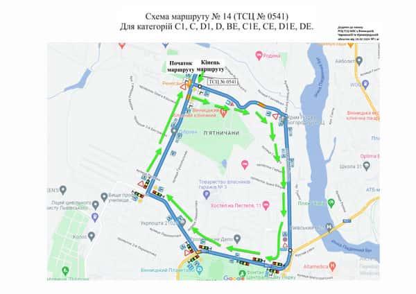 Маршрут №14 ТСЦ МВС № 0541. Для перевірки навичок керування ТЗ категорії C1, C, D1, D, BE, C1E, CE, D1E, DE.