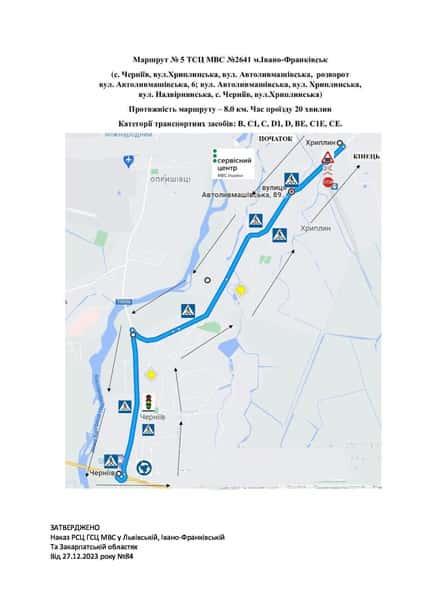 Маршрут №5 ТСЦ МВС № 2641. Для перевірки навичок керування ТЗ категорії B, С1, С, D1, D, ВЕ, С1Е, СЕ.