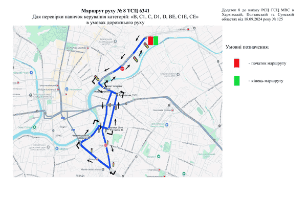 Маршрут №8 ТСЦ МВС № 6341. Для перевірки навичок керування ТЗ категорії B, C1, C, D1, D, BE, C1E, CE.
