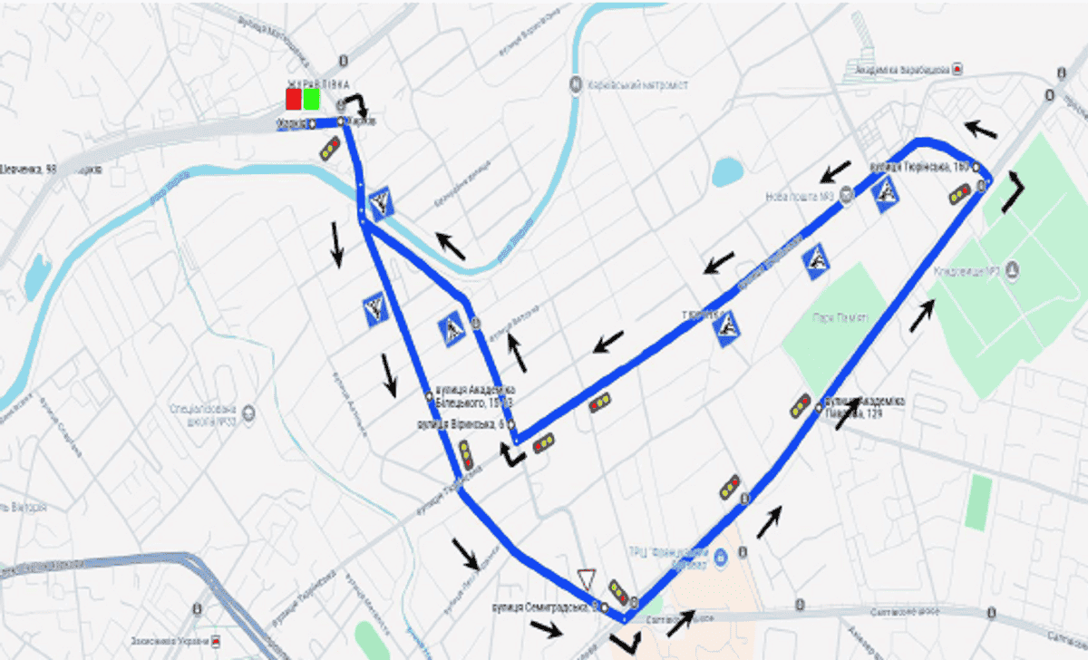Маршрут №3 ТСЦ МВС № 6341. Для перевірки навичок керування ТЗ категорії B.