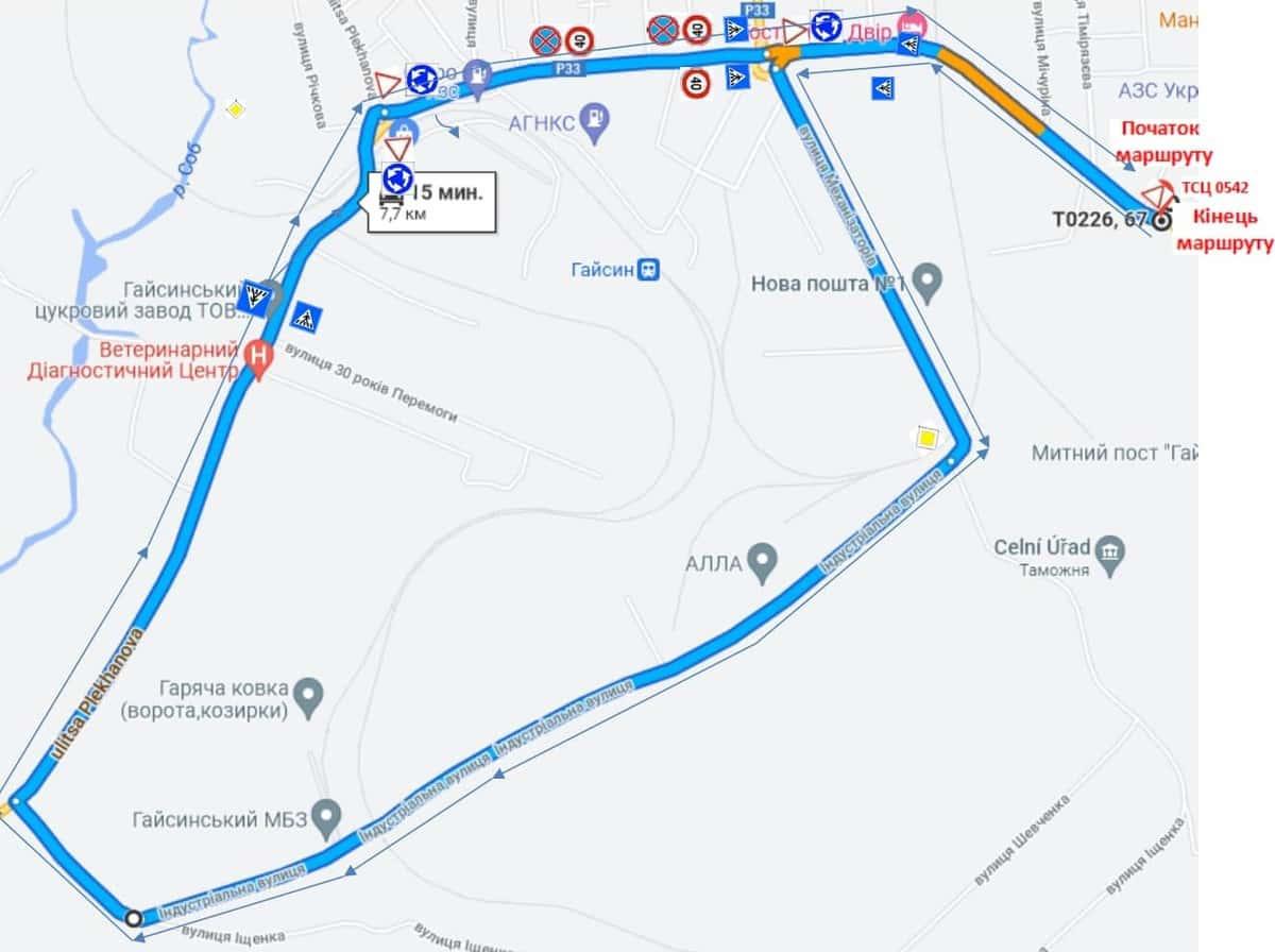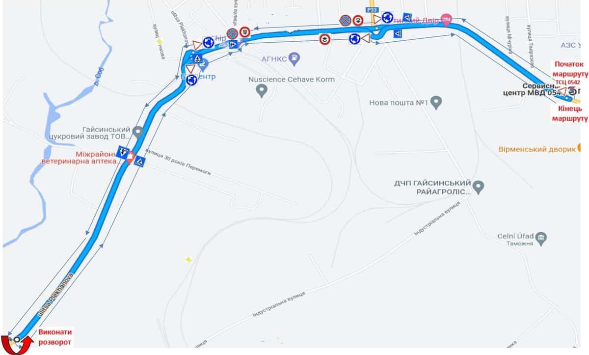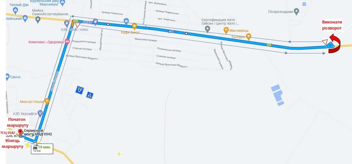 Гайсин - Маршрути для перевірки навичок керування ТЗ