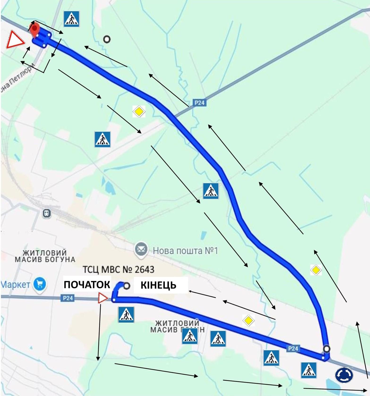 Маршрут №1 ТСЦ МВС № 2643. Для перевірки навичок керування ТЗ категорії B, С1, С, D1, D, ВЕ, С1Е, СЕ.