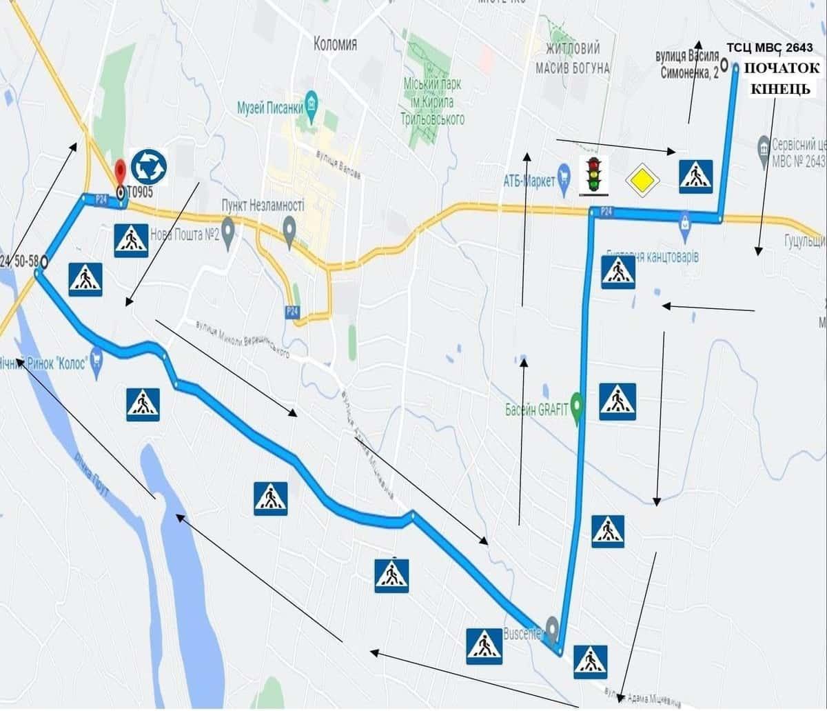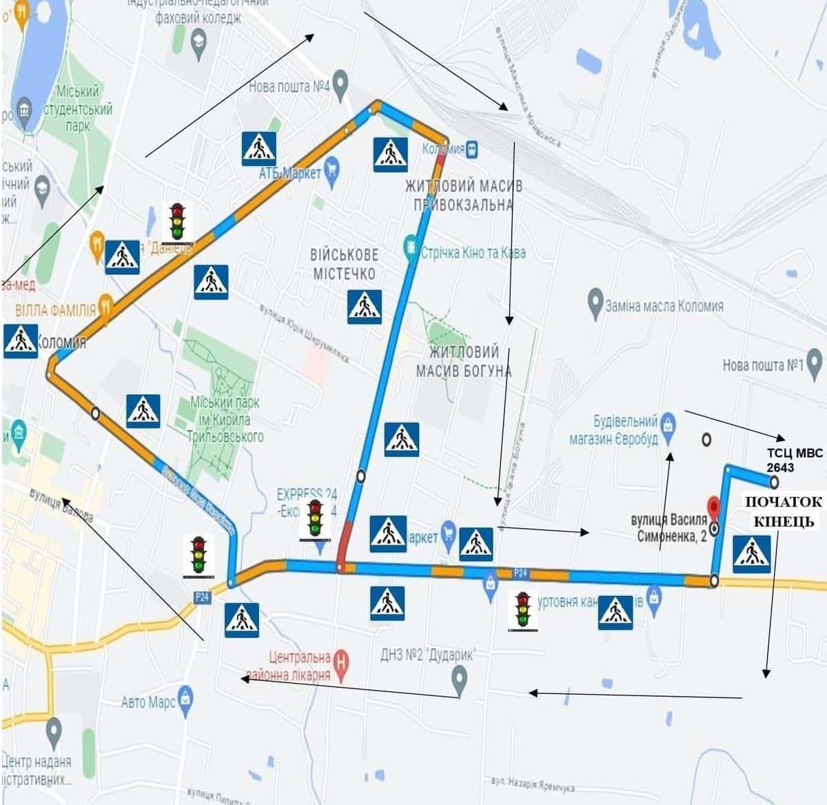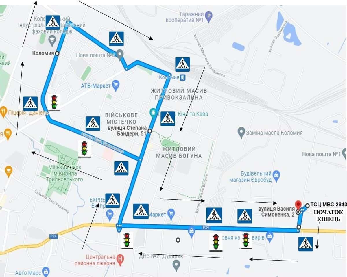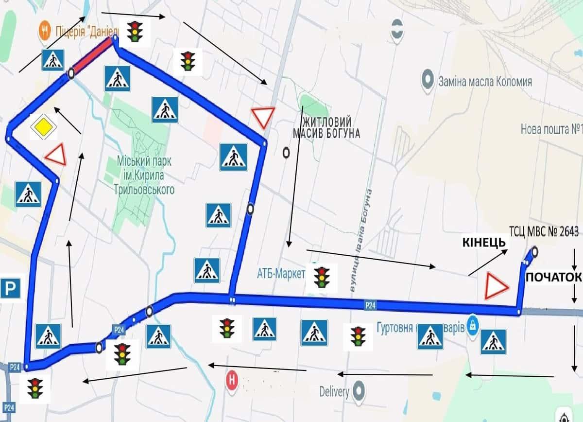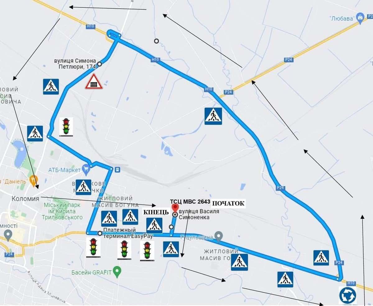 Коломия - Маршрути для перевірки навичок керування ТЗ