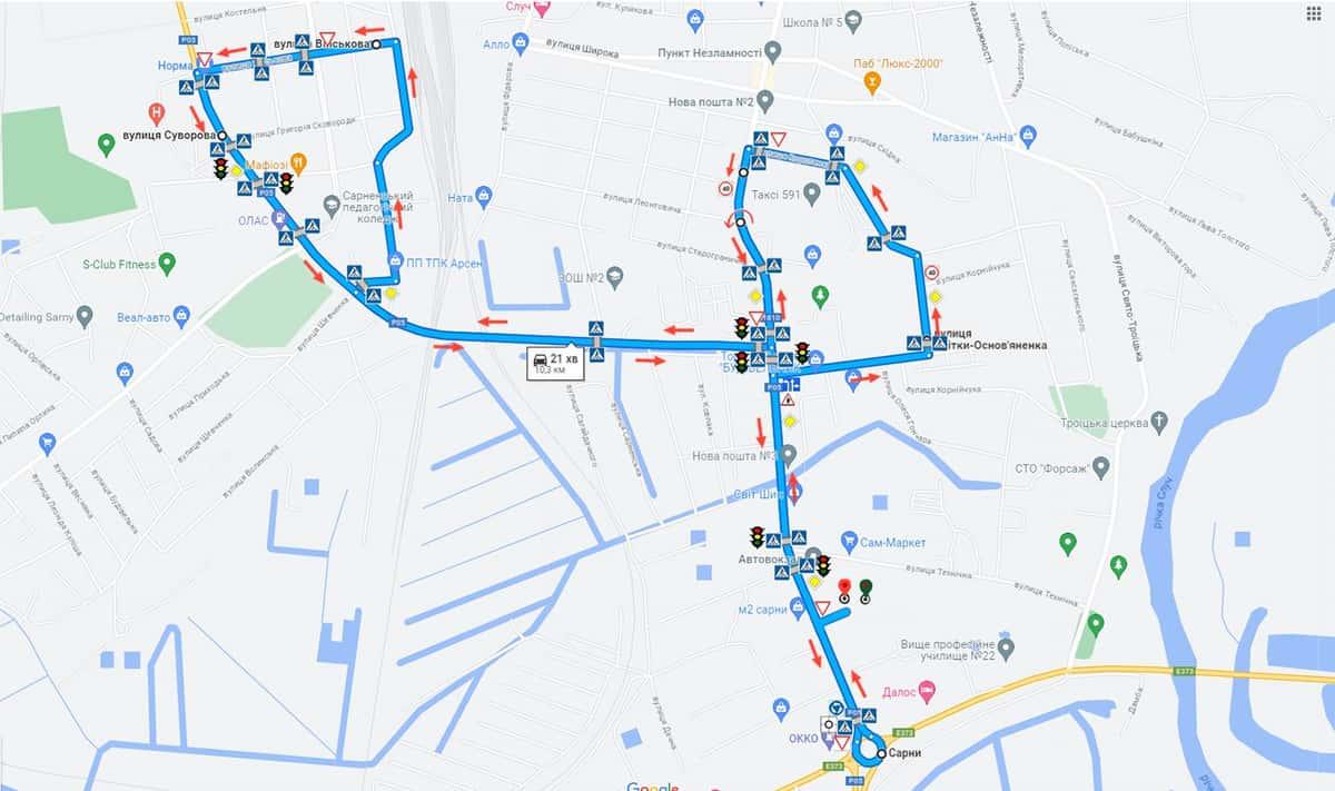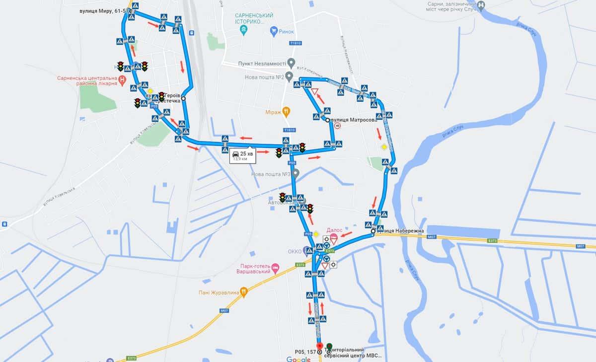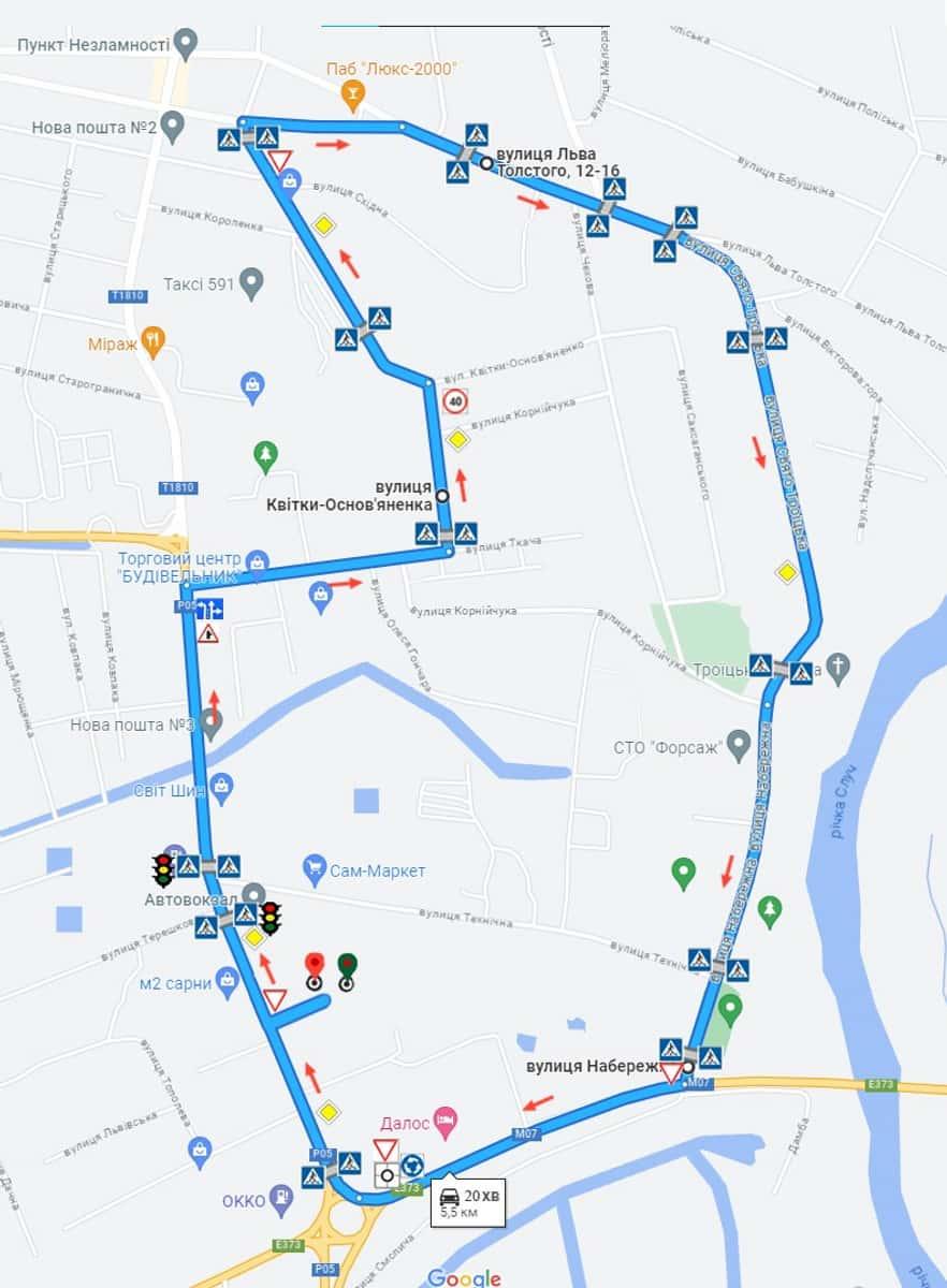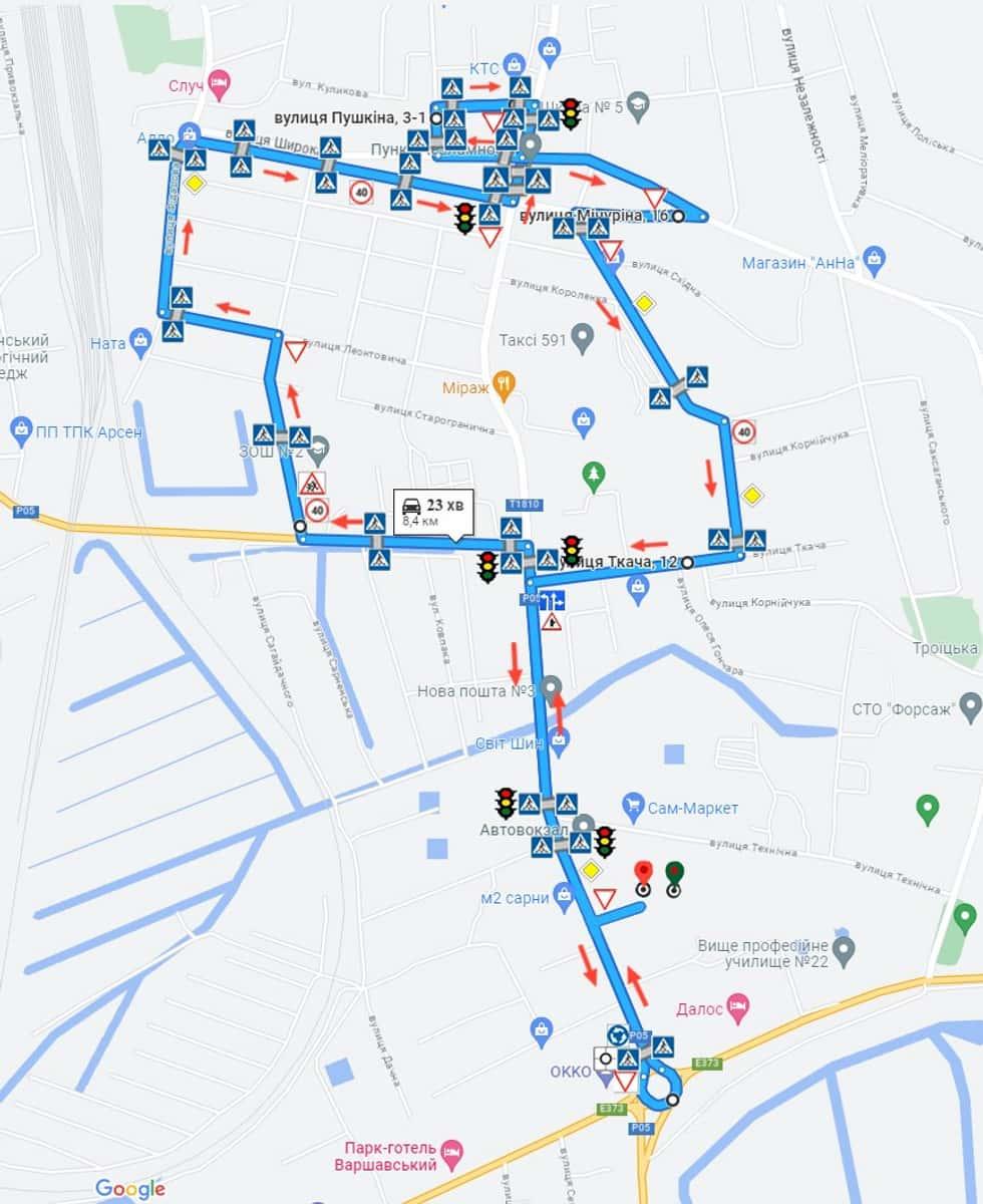 Сарни - Маршрути для перевірки навичок керування ТЗ